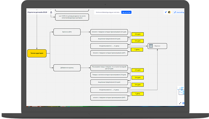 Формируем общую стратегию продвижения, которая затрагивает разные каналы привлечения клиентов в комплексе с воронкой продаж
